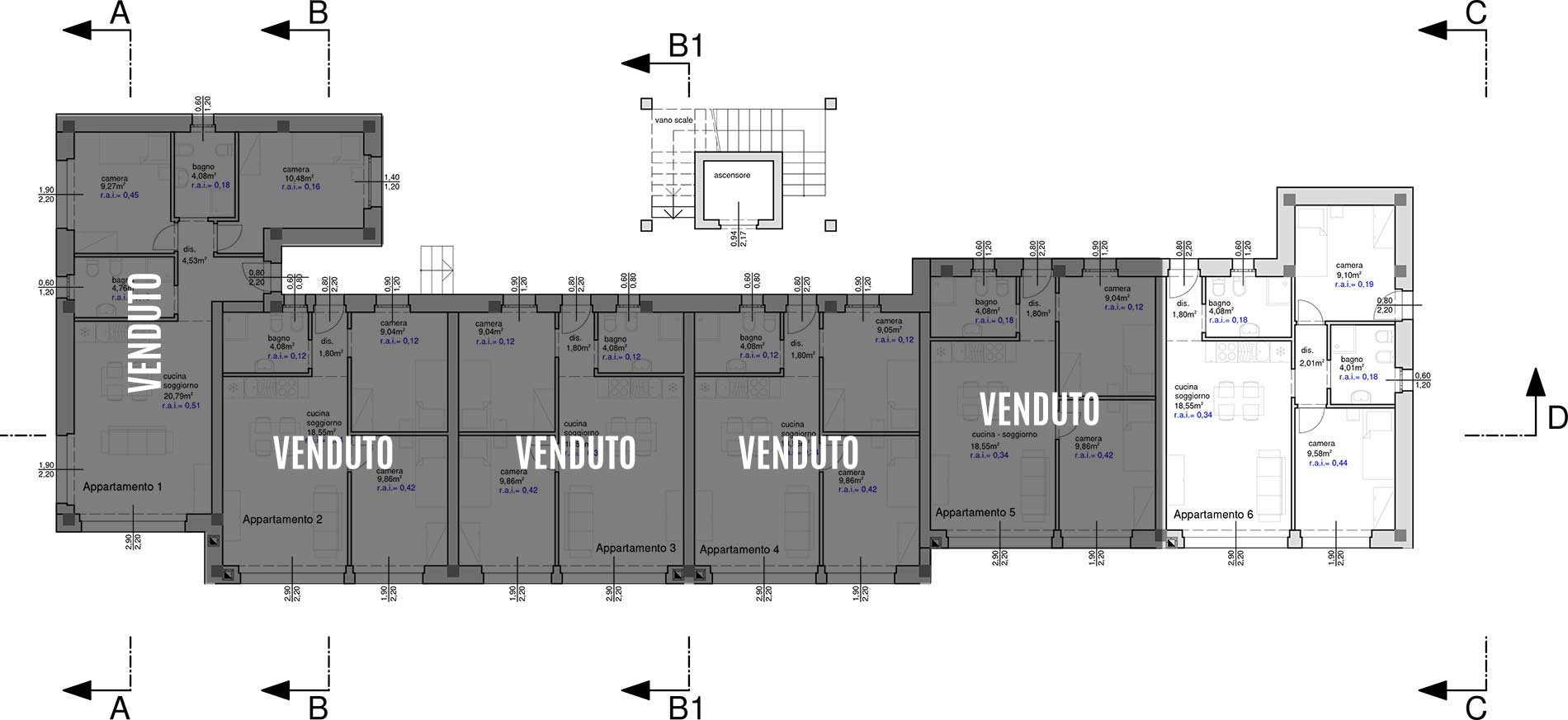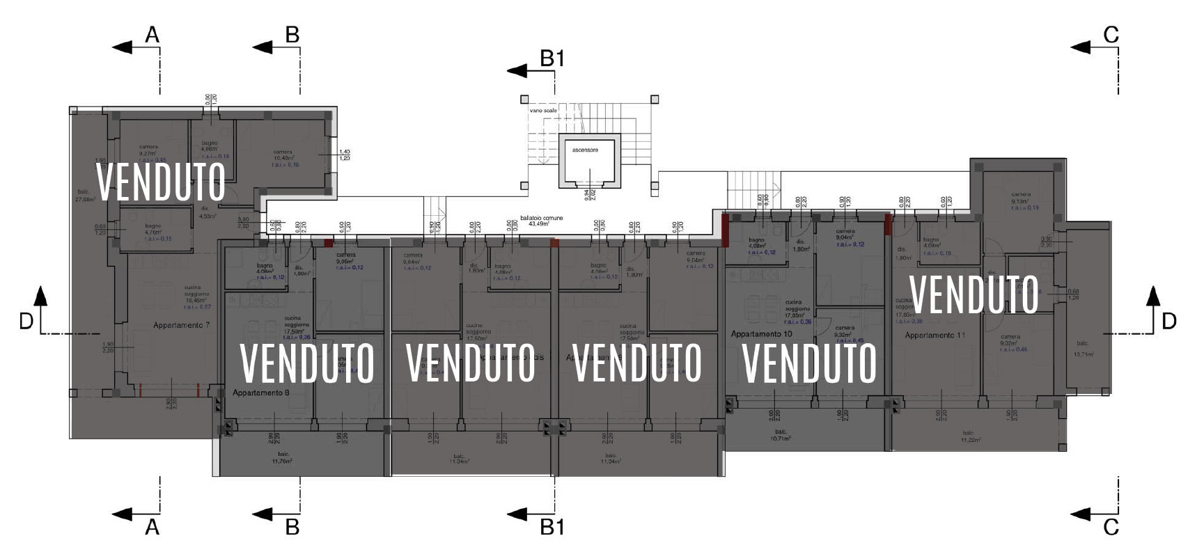 La costruzione sarà composta da trilocali da 58/60 mq² e trilocali più ampi con doppi servizi.